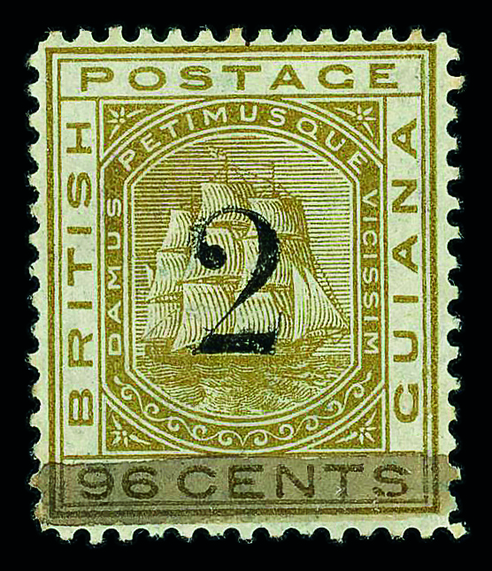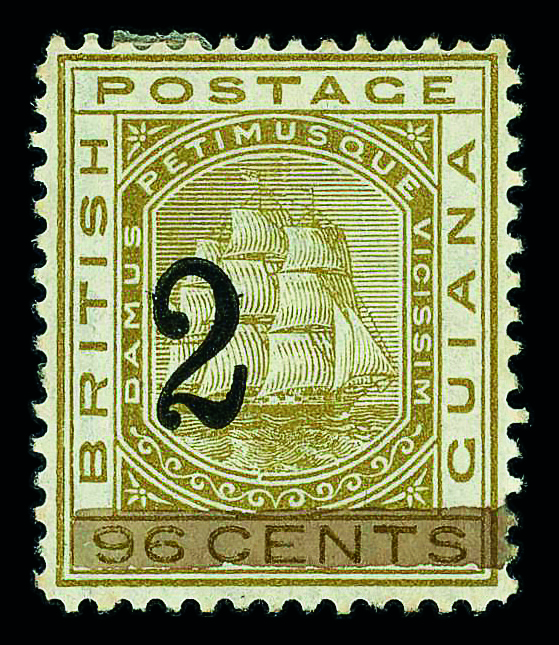 7745 og 94 image1881, Provisional Surcharge, 2¢ on 96¢ olive bister (Scott 94), single, o.g., hinge remnants, Fine to Very Fine.