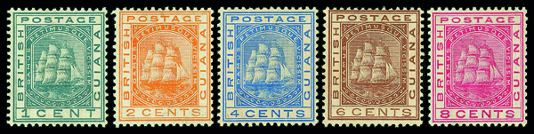 7751 og 107-111 image1882, Seal of the Colony, 1¢-8¢ complete (Scott 107-111), complete set of singles, o.g., hinge remnant, Very Fine.