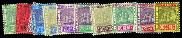 7753 og 130-147 image1889-1907, Seal of the Colony, 1¢-60¢ complete (Scott 130-147), complete set of singles, o.g., hinge remnant, Fine to Very Fine, Includes Scott 144a and 146a.