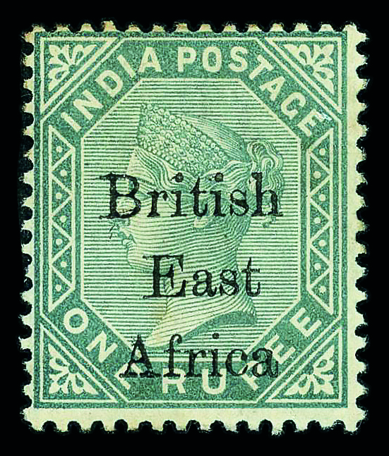 7728 og 66 image1895, "British East Africa" on India 1r slate (Scott 66), single, o.g., hinge remnant, Fine.