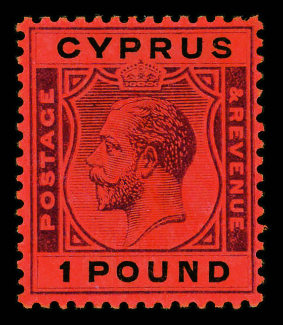 7816 og 110 image1924, King George V, £1 purple & black on red, Multiple Crown CA watermark (Scott 110), single, o.g., hinge remnant, Very Fine.