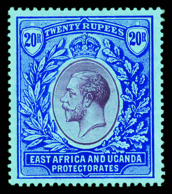 7840 nh 56 image1918, King George V, 20r purple & blue on blue (Scott 56), Multiple Crown CA watermark, single, o.g., never hinged, Very Fine.