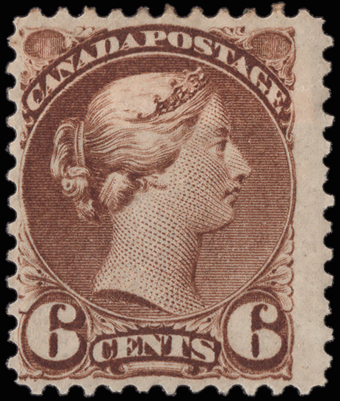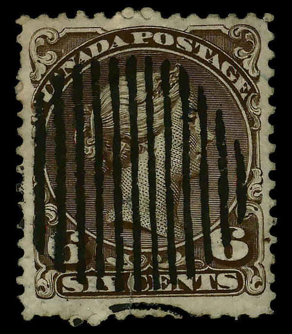 7965 O 27 image1868, Large Queen, 6¢ dark brown (Scott 27); small faults, Very Fine.