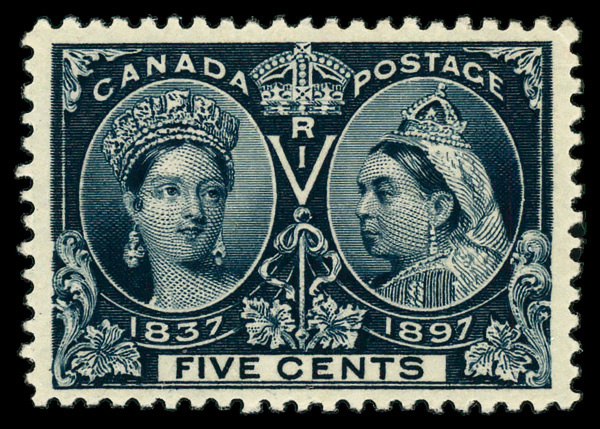 7981 og 54 image1897, Queen Victoria Jubilee, 5¢ deep blue (Scott 54), single, o.g., lightly hinged, Very Fine.