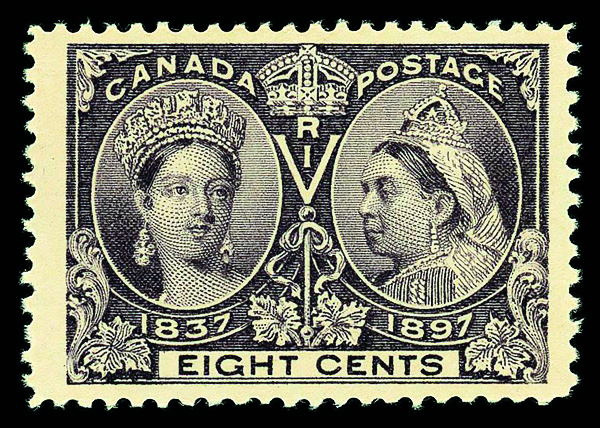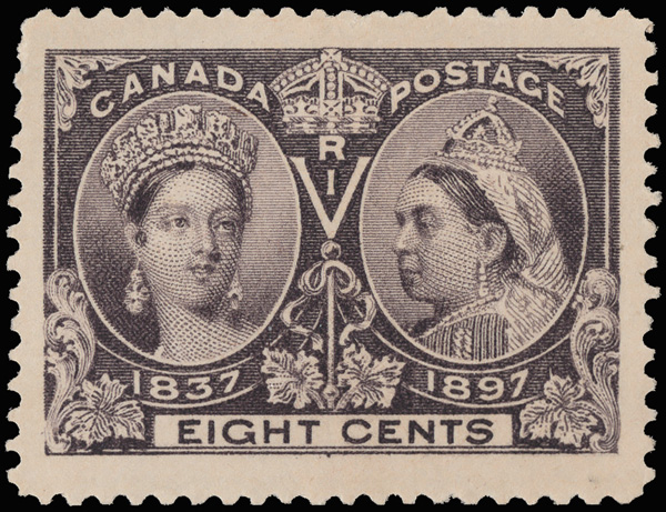 7984 og 56 image1897, Queen Victoria Jubilee, 8¢ dark violet (Scott 56), single, part o.g. and hinge remnants, Very Fine.