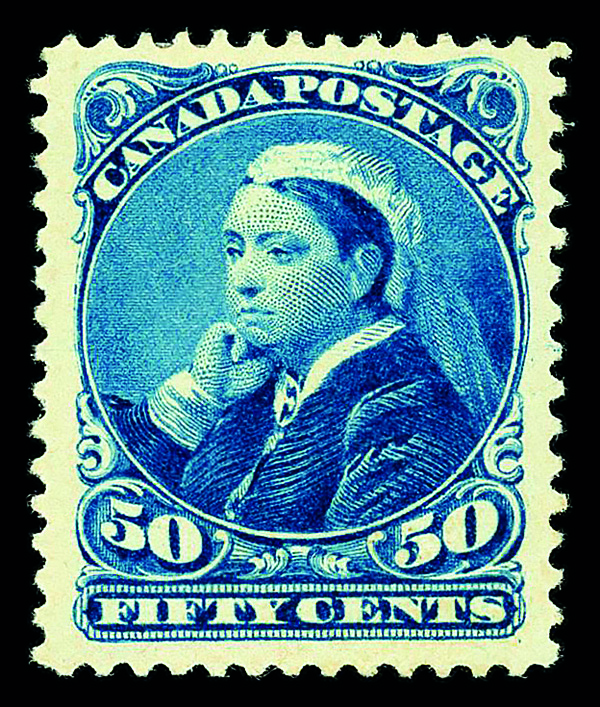 7972 og 47 image1893, Queen Victoria "Widow's Weeds", 50¢ deep blue (Scott 47), single, o.g., hinge remnant, Very Fine.