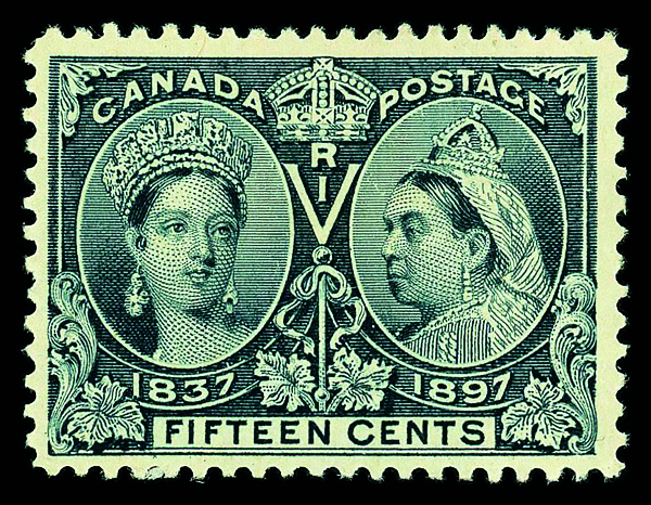 7976 og 52 image1897, Queen Victoria Jubilee, 2¢ green (Scott 52), single, o.g., lightly hinged twice (gum disturbance), Very Fine.