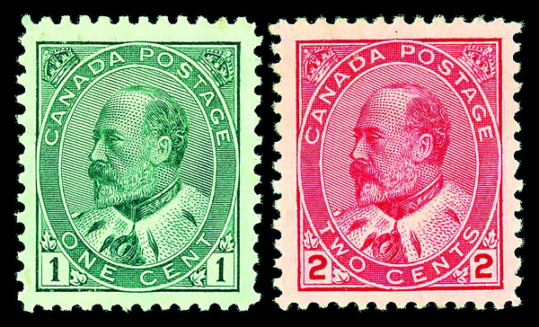 8003 og 89,90 image1903, King Edward VII, 1¢ green and 2¢ carmine (Scott 89,90), singles, o.g., lightly hinged or hinge remnant, Very Fine.
