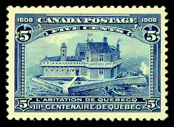 8012 og 99 image1908, 5¢ Quebec Tercentenary (Scott 99), single, o.g., hinge remnant, Very Fine.