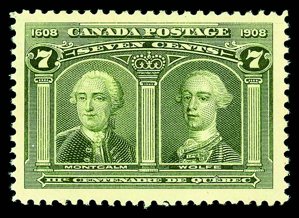 8013 og 100 image1908, 7¢ Quebec Tercentenary (Scott 100), single, o.g., hinge remnant, Very Fine.