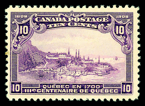 8014 og 101 image1908, 10¢ Quebec Tercentenary (Scott 101), single, o.g., hinge remnant, Fine to Very Fine.