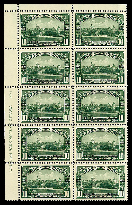 8125 nhbl 215 image1935, 10¢ Windsor Castle (Scott 215), plate block of 10, o.g., never hinged, Extremely Fine.
