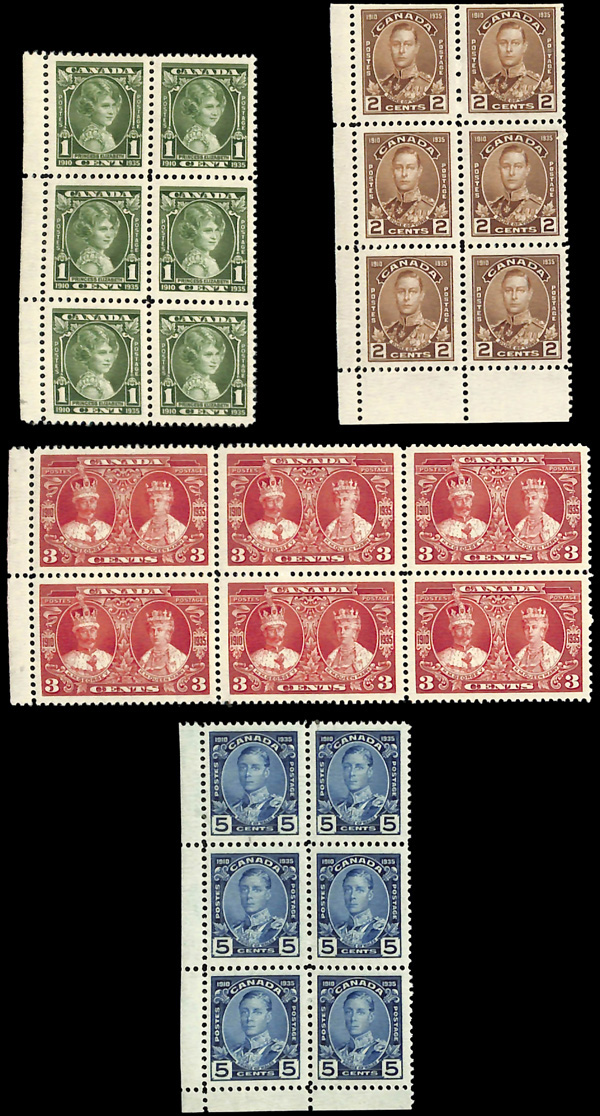 8135 nhbl 231-236 image1937, King George VI definitives, 1¢ to 8¢ complete (Scott 231-236), set of 6, blocks of 4, o.g., never hinged, Extremely Fine.