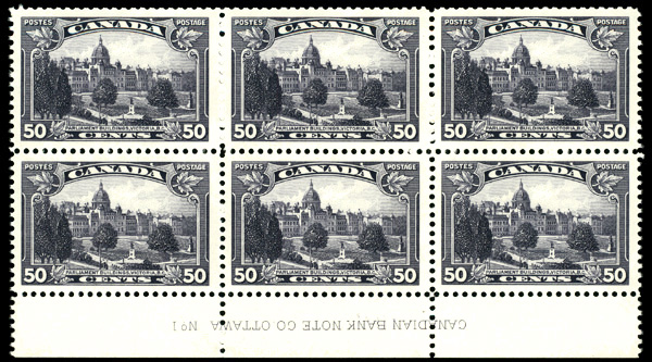 8131 nhbl 226 image1935, 50¢ Parliament Buildings in Victoria B.C. (Scott 226), plate block of 6, o.g., never hinged, Extremely Fine.