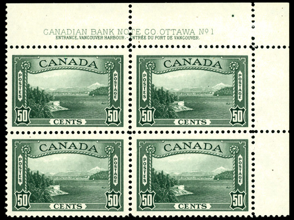 8141 nhbl 244 image1938, 50¢ Vancouver Harbor (Scott 244), plate block of 4, o.g., never hinged, Extremely Fine.