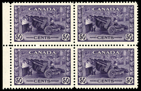 8147 nhbl 261 image1942, 50¢ Munitions Factory (Scott 261), block of 4, o.g., never hinged, Extremely Fine.