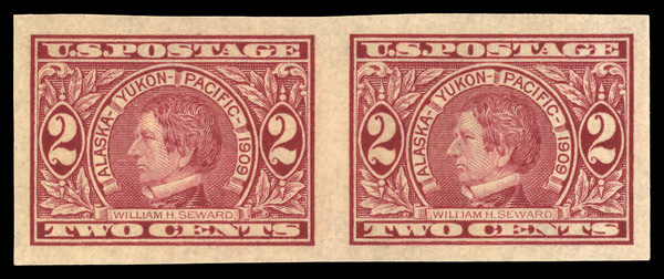 7093 nh 371 image1909, 2¢ Alaska-Yukon, imperf. (Scott 371), pair, o.g., never hinged, Extremely Fine.