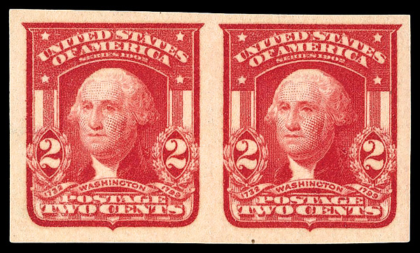 7084 og 320 image1906, 2¢ carmine, type I, imperf. (Scott 320), pair, o.g., lightly hinged, Extremely Fine, with 2024 P.F. certificate graded XF 90.