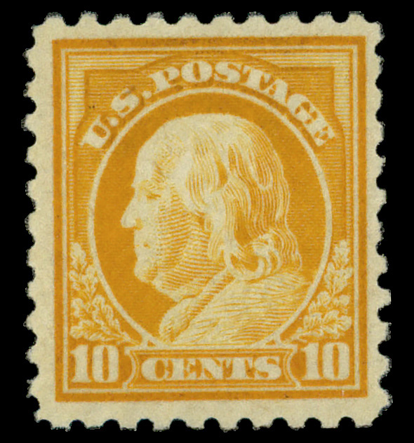 7112 og 472 image1916, 10¢ orange yellow, unwatermarked, perf. 10 (Scott 472), o.g., lightly hinged, Fine to Very Fine.
