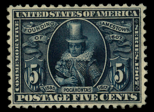 7089 og 330 image1907, 5¢ Jamestown (Scott 330), o.g., hinged, Extremely Fine.