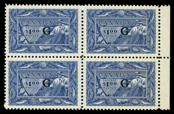 8171 O27 imageOfficial, 1951, $1 bright ultramarine 'G' overprint (Scott O27), block of 4, o.g., never hinged, Extremely Fine.