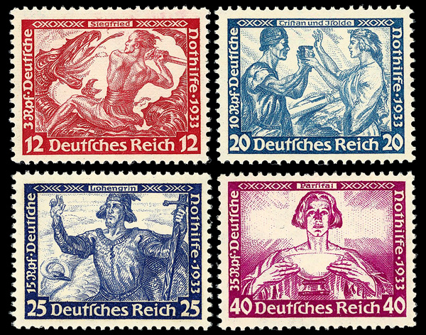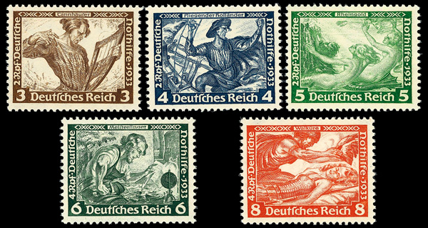 8200 og B49-B57 image1933 Wagner complete (Scott B49-B57), set of 9, o.g., lightly hinged or hinge remnant, Very Fine to Extremely Fine.