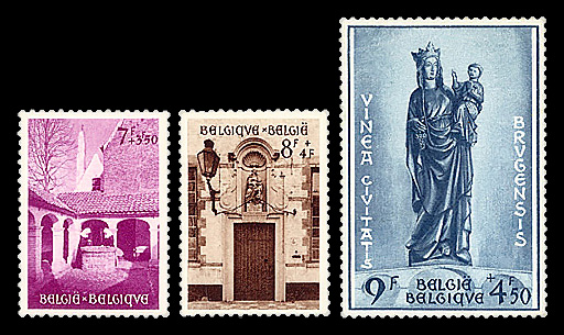 8174 og B561-B566 image1954 Beguinage of Bruges complete (Scott B561-B566), o.g., hinged (9fr+4.50fr corner crease), Very Fine to Extremely Fine.