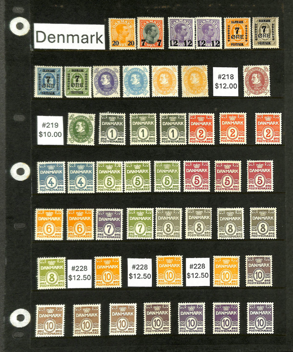 8179   imageDenmark, Classic Airmail set 1925-1929, beautiful unused complete set of the first Airmail issues from Denmark; attractively laid out on a black stock page; catalog $375, Very Fine. (Image) Suggested Bid $75