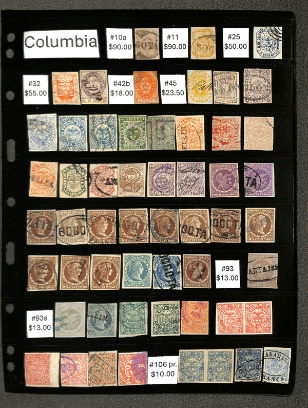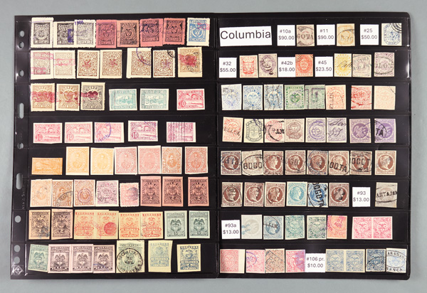 8177   imageColombia, Early used issues 1861-1925, Approx 275 mostly used collection of classic Columbia; includes #10a//379, C42, CF1, F9//F17, H3//H4, I4, L11, LX1//LX3, plus a few Antioquia, Boyaca, and Santander on Vario stock pages; catalog $810, Fine to Very Fine. (Image) (Image2) (Image3) (Image4) (Image5) (All Images)