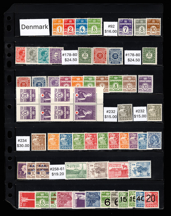 8180   imageDenmark, Love engraved stamps? 1913-1987, 275+ unused stamps of Denmark on Vario pages; includes #85//888, B6//B56, J10//J26, and Q29//Q44; delightful group with catalog of $620, Very Fine. (Image) (Image2) (Image3) (Image4) (All Images)