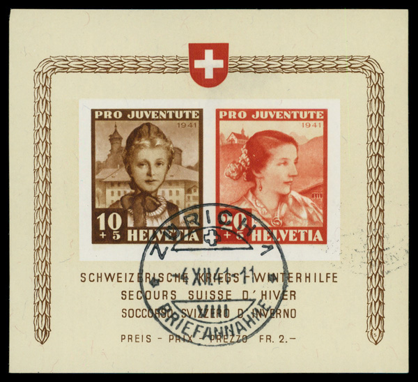 8312 O B116 image1941, Pro Juventute souvenir sheet (Scott B116), Extremely Fine.