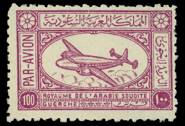8286 og C33 image1965, 1p, Boeing 720-B Jet King Saud Cartouche (Scott C33), single, o.g., lightly hinged, Very Fine.
