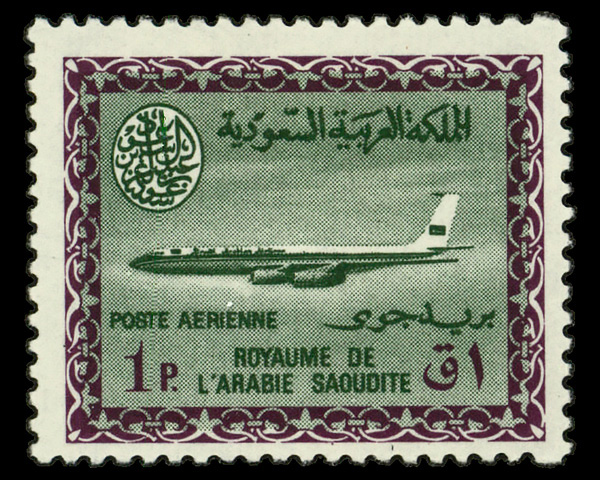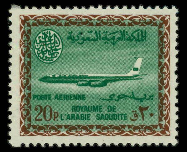 8288 og C52 image1965, 20p, Boeing 720-B Jet King Saud Cartouche (Scott C52), single, o.g., lightly hinged, Very Fine.
