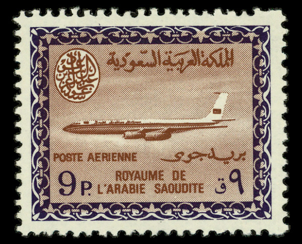 8287 nh C41 image1965, 9p, Boeing 720-B Jet King Saud Cartouche (Scott C41), single, o.g., never hinged, Very Fine.