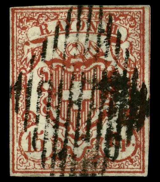 8308 O 12 image1852, Rayon III, 15rp vermilion, large numerals (Scott 12), single, Fine to Very Fine.