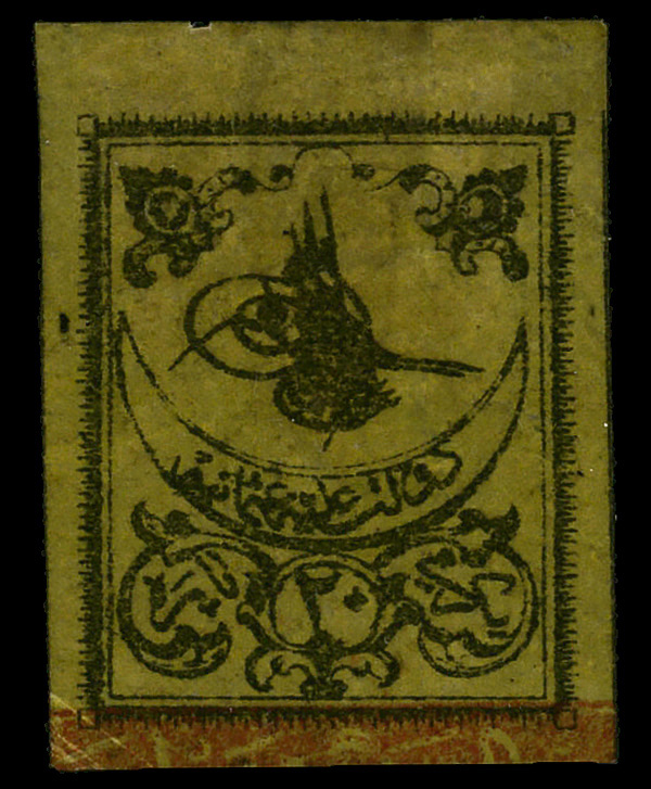 8316 O 1 image1863, 20pa black on yellow paper (Scott 1), single, Extremely Fine.