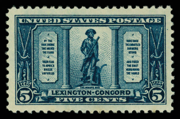 7187 nh 619 image1925, 5¢ Lexington-Concord (Scott 619), o.g., never hinged (gum crease), Extremely Fine.