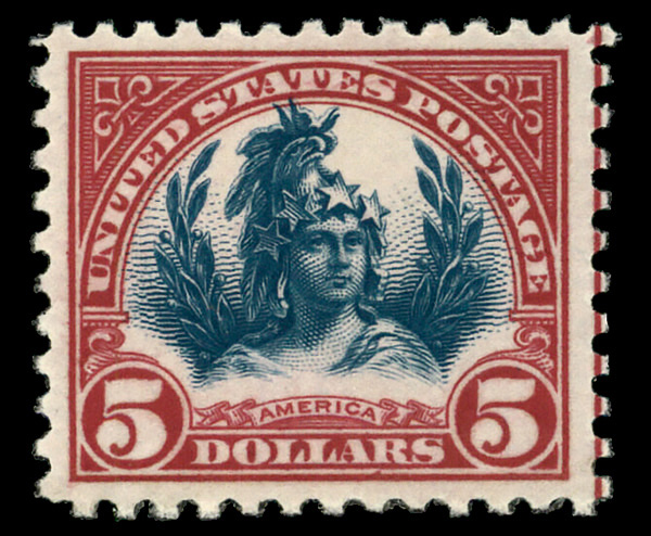 7169 nh 573 image1923, $5 America (Scott 573), o.g., never hinged, Very Fine.