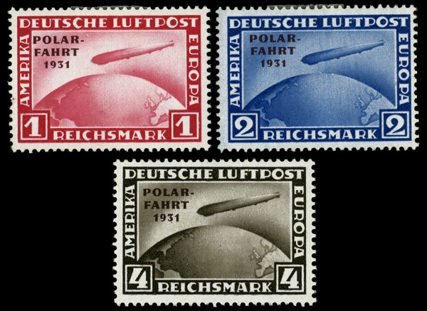9533 og C40-C42 imageAirmail, 1931, 1m-4m Polar Flight Zeppelins complete (Scott C40-C42), o.g., hinge remnants, Very Fine.