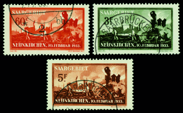 9553 O B44-B45 image1933, Neunkirchen Explosion Aid, complete (Scott B44-B45), set of 3, Very Fine.