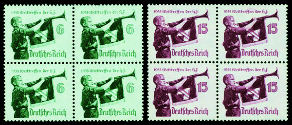 9524 nhbl 463-464 image1935, Hitler Youth, complete (Scott 463-464), set of 2, blocks of 4, o.g., never hinged, Extremely Fine.