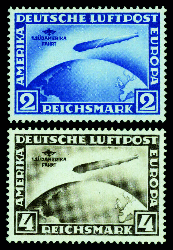 9532 og C38-C39 imageAirmail, 1930, 2m-4m So. America Flight Zeppelins complete (Scott C38-C39), set of 2, o.g., lightly hinged, Very Fine to Extremely Fine, signed.