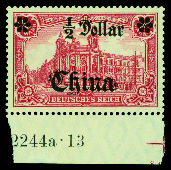 9536 og 44 I A II image1906, $½ on 1m dark carmine 'China' overprint, bottom margin single with HAN #, o.g., small hinge remnant, Extremely Fine.