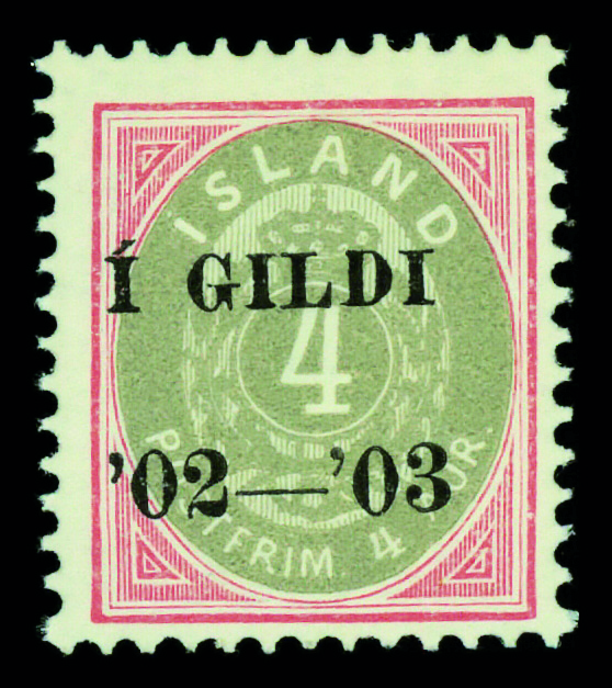9652 nh 51 image1902, black "I Gildi" overprint on 4a rose & gray, perf 12¾ (Scott 51), o.g., never hinged, Fine to Very Fine.