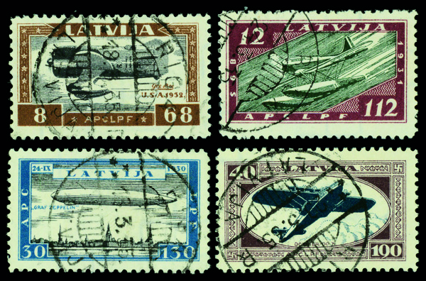 9662 O CB21-CB24 image1933, Latvian Avaitors Assistance, complete (Scott CB21-CB24), set of 4, Very Fine to Extremely Fine.
