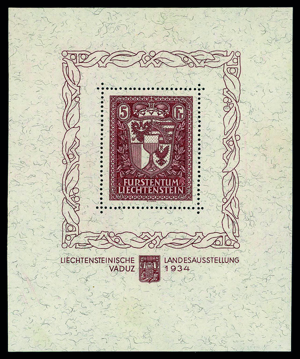 9664 nh 115 image1934, Vaduz Exhibition souvenir sheet of 1 (Scott 115), o.g., never hinged, Extremely Fine.