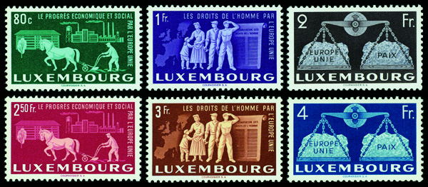 9668 nh 272-277 image1951, United Europe complete (Scott 272-277), set of 6, o.g., never hinged, Extremely Fine.