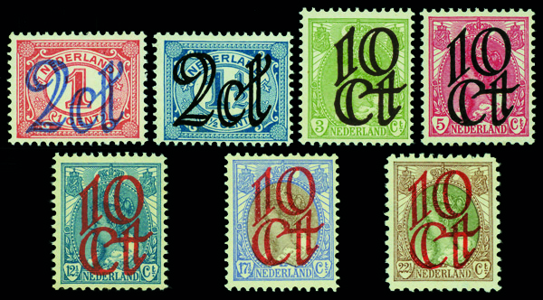 9670 nh 117-123 image1923, 2c-10c surcharges, complete (Scott 117-123), set of 7, o.g., never hinged, Fine to Very Fine.