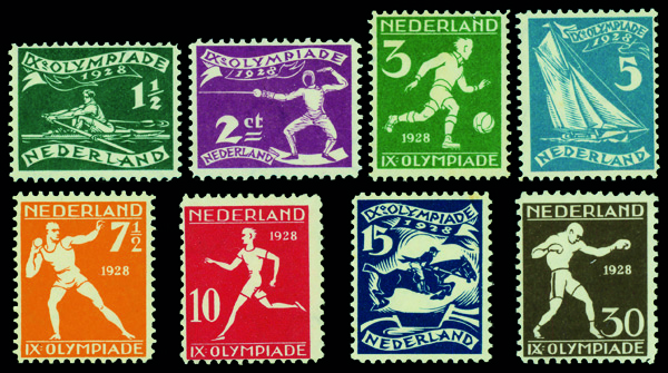 9672 nh B25-B32 image1928, 1½c-30c Olympics complete (Scott B25-B32), o.g., never hinged, Fine to Very Fine.