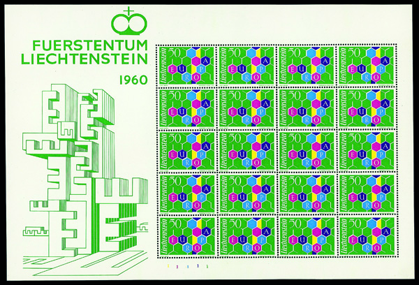 9666 nhbl 356 image1960, 50rp Europa (Scott 356), pane of 20, o.g., never hinged, Very Fine to Extremely Fine.